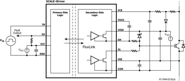 該公司的SID11x2K系列以標(biāo)準(zhǔn)eSOP封裝的單通道IGBT和MOSFET驅(qū)動(dòng)器為代表。該系列采用固體絕緣體FluxLink技術(shù)提供增強(qiáng)型電氣隔離。其8 A峰值輸出電流能夠驅(qū)動(dòng)高達(dá)600 A(典型值)的設(shè)備,而無需任何其他有源組件。
