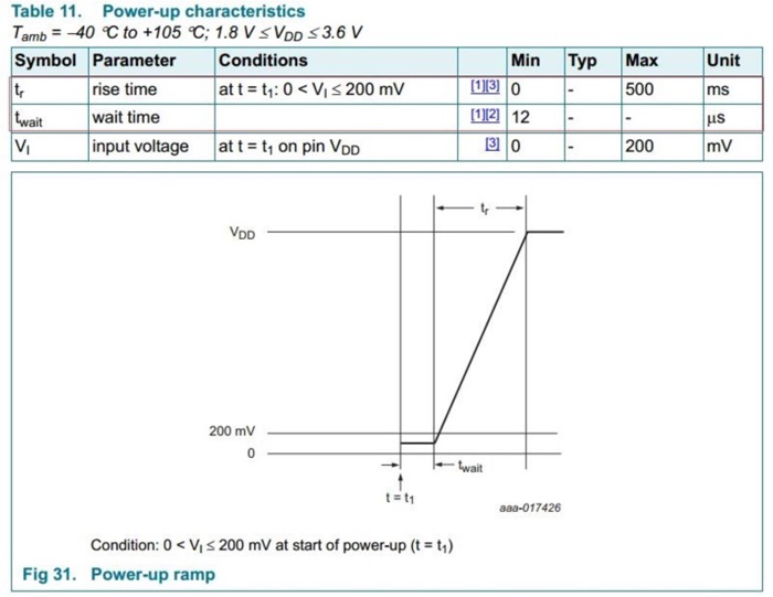 1、上電前的電壓VI需要低于200mV至少12us;