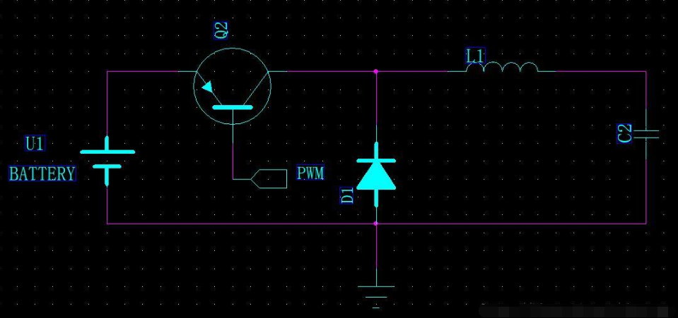 降壓模式——Bust mode,這個大家比較熟悉的,用的也比較多,比如5V-》3.3V穩壓,對應的芯片很多大家上網搜一下就有了,有LDO模式和DC-DC模式的。其中LDO模式的芯片外圍電路較簡單,只需在輸入和輸出端加上濾波電容即可。而DC-DC模式的芯片電路相對較復雜一點,但是效率較高。一般需要外接電容和電感,通過閉合開關對電感進行充電,斷開開關之后,電感作為一個電源進行放電,可以通過PWM的占空比來調節輸出電壓值,電壓值最大不會超過電源電壓。對于DC-DC降壓模式的基本電路如下圖所示: