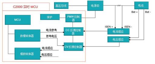 在數字實現中,微控制器(MCU)執行圖1中紅色框內的所有功能。借助C2000™實時控制MCU,可生成16位PWM并使用其比較器來實現保護算法。MCU通過ADC反饋的數據來調整電流和電壓控制器。由于控制器位于數字域,因此該體系結構無需精密的16位DAC。一個12位片上ADC可實現低于±0.05%的控制精度,足以用于成本優化型電池試驗系統。但是,如果想實現±0.01%的控制精度,那么該方案要求外部具有16bit的反饋精度,數字解決方案可輕松實現準確度和靈活性;性能和成本差異僅取決于您選擇在反饋中使用外部16位ADC還是內部12位ADC。在此方案中,MCU的高效使用可以節省30%以上的物料成本。