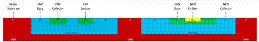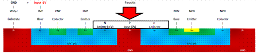 圖4. 運放NPN和PNP管和基底構成寄生NPN管