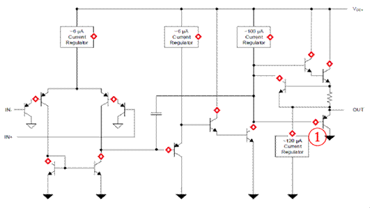 雖然各家廠商推出的運算放大器性能與規格互有差異,但是一般而言標準的運算放大器都包含下列三個部分。
