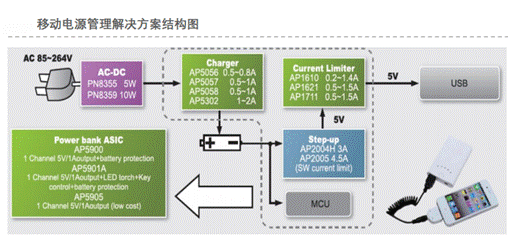 1.基本原理:移動(dòng)電源系統(tǒng)提供分立式系統(tǒng)方案,包括AC/DC、升壓DC/DC、USB限流、鋰電充電管理等全系列的電源管理芯片產(chǎn)品;