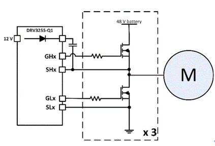 圖3:典型的48V大功率電機驅動器方框圖