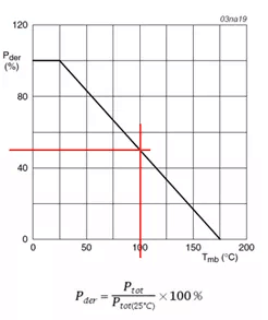 如下圖所示:在溫度升高之后,MOS所能承受的功率一定會被降額,當溫度升高到100攝氏度的時候,功率降低為原來的50%左右。同樣,RDSON 以及VDS最高電壓,ID max電流全部受到溫度的影響。