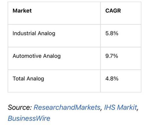 總之,該公司將在2020年繼續保持模擬市場的領先地位,其收入增長將保持平穩。它仍然致力于長期專注于工業和汽車市場,尤其是預計將超過整體模擬市場。我們更佩服該公司在工業市場上的實力,并在亞洲市場享有很高的知名度。