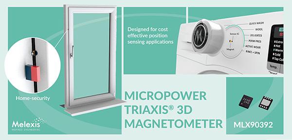 全球微電子工程公司 Melexis 宣布推出面向白色家電、消費類電子產品和智能儀表應用的三軸磁場傳感器芯片 MLX90392,可與其他組件(如邏輯器件)共享 1.8V 的電源軌工作。