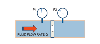 2.壓差傳感器,用于測(cè)量作為傳感單元輸入引入的兩個(gè)或多個(gè)壓力之間的壓差。這種傳感器的一個(gè)應(yīng)用示例是差壓流量計(jì)(圖2),其中流體速度的變化會(huì)引起壓力的變化,并產(chǎn)生壓力差ΔP= P1 – P2。