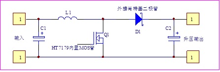 HT7179內部集成15A的MOS開關管,外圍除了必須的電感之外,關鍵器件就是肖特基二極管。原理上是一種常見的開關直流boost升壓DC-DC電路,它通過開關管導通和關斷來控制電感儲存和釋放能量,從而使輸出電壓比輸入電壓高。基本的工作原理如下: