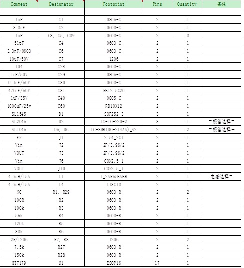 (9). HT7179 DEMO板物料清單