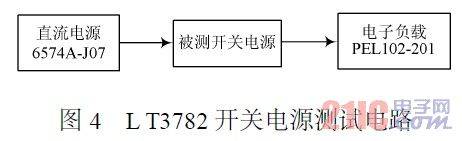 為了驗(yàn)證該開關(guān)電源性能,采用如圖4所示的方法進(jìn)行驗(yàn)證。因?yàn)樵撾娫吹妮斎腚娏鬏^大,輸入的直流電源采用安捷倫的6574A2J07。它的輸出電流最高可達(dá)42A,輸出電壓在0~50V范圍內(nèi)可調(diào),輸出負(fù)載采用建伍的PEL1022201,通過它可以直觀地看到輸出電壓和電流情況。經(jīng)過驗(yàn)證,該電路完全滿足使用單位需求。