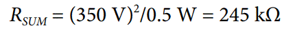 在此示例中,為將瞬時功耗保持在 0.5 W 以下,每個分壓器中兩個電阻之和(RSUM)不得小于以下值: