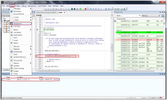 代碼斷點的數量受限于MCU硬件斷點的數量,但如果代碼在RUM中運行,開發人員利用軟件斷點,軟件斷點的數量則可以是無限的。即使數量有限,例如對于Arm Cortex-M,有6到8個斷點,但開發人員也可以保存斷點位置并在需要時禁用和啟用斷點。只需要選擇顯示View ->Breakpoints window,就可以選中/清除方框,也就是啟用或禁用斷點。