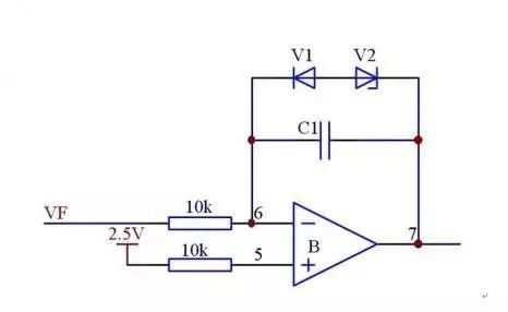 (2.5-0.7)*1000/1010=2.48V。當VF低于6腳電平后,7腳輸出高電平(如果運放供電15V,7腳輸出可按照14V計算)可以計算此時6腳電平為2.5
