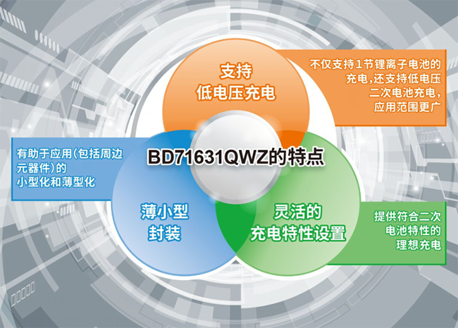 全球知名半導體制造商ROHM(總部位于日本京都市)開發出一款充電控制 IC“BD71631QWZ”,該產品支持搭載二次電池的無線耳機等可穿戴設備以及智能顯示器等小而薄的物聯網設備的低電壓充電。
