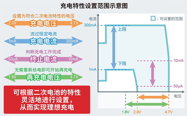 近年來,在小而薄的物聯網設備等領域,對更安全、高密度的二次電池的需求高漲,促使采用新材料作為電解部分的全固態和半固態電池、改變了電極材料的電池等新型二次電池的開發進程加速。而另一方面,很多新型二次電池又小又薄,需要2V~3V級的低電壓充電,卻沒有可以支持寬電壓范圍的充電控制IC。