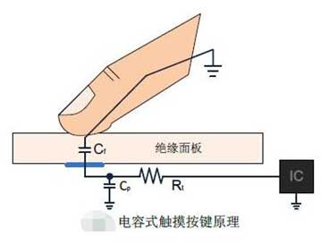 任何兩個導電的物體之間都存在著感應電容,一個按鍵即一個焊盤與大地也可構成一個感應電容,在周圍環境不變的情況下,該感應電容值是固定不變的微小值。當有人體手指靠近觸摸按鍵時,人體手指與大地構成的感應電容并聯焊盤與大地構成的感應電容,會使總感應電容值增加。電容式觸摸按鍵IC在檢測到某個按鍵的感應電容值發生改變后,將輸出某個按鍵被按下的確定信號。電容式觸摸按鍵因為沒有機械構造,所有的檢測都是電量的微小變化,所以對各種干擾會更加敏感,因此觸摸按鍵設計、觸摸面板的設計以及觸摸IC的選擇都十分關鍵。