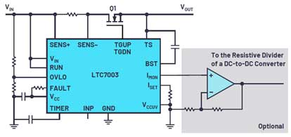 圖2.通過LTC7003驅動器組件添加的限流功能