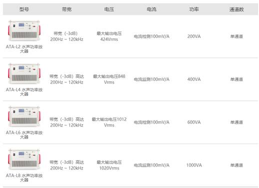 ATA-L系列水聲功率放大器型號參數指標: