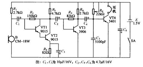 圖1利用分立元件制作助聽器的電路原理圖