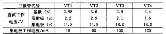表1 JZF1730型放大器中三極管的直流工作電壓電流值