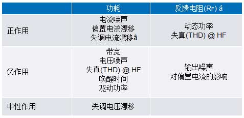 表1.低功耗運算放大器的權衡