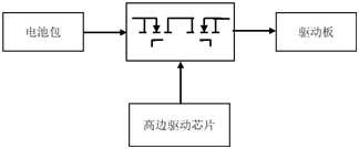 在電動工具中,引入高邊驅動方案,除了避免傳統機械開關的固有缺點,同時具有可控強、導通時間可調整、支持多包并聯、短路保護、體積小等優點。如圖2所示,高邊驅動IC會產生高出電池包12V的電壓,通過控制MOS的Gate電壓,可以控制主回路通斷。