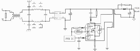 由1-1和1-2式可知,寄生電感和di/dt形成電壓尖峰,寄生電容和dv/dt形成電流尖峰。這些快速變化的電流和關聯的諧波在其他地方產生耦合的噪聲電壓,因此影響到開關電源EMI特性。下面以反激式開關拓撲為例,對降低MOSFET的dv/dt和di/dt措施進行介紹。