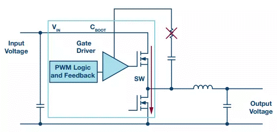 圖1:對開關模式電源進行開關轉換,在開關節點處施加輸入電壓