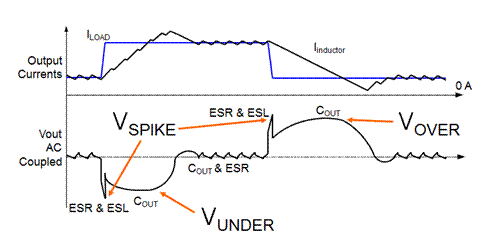 下文圖4所示為每個輸出電容元件對降壓轉換器負載瞬態性能的作用機制