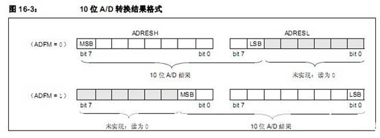 如果是左對齊 高8八位放在ADRESH,剩下的2位放在ADRESL中。見下圖