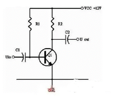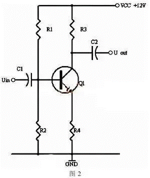 同理,當輸入信號減小時,則Ib減小,Ic電流減小,則電阻R2的電壓U2=Ic×R2會隨之減小,Uce=VCC-U2,會變大。在輸入信減小時,Uce最大變化是從1/2的VCC變化到VCC。這樣,在輸入信號一定范圍內發生正負變化時,Uce以1/2VCC為準的話就有一個對稱的正負變化范圍,所以一般圖1靜態工作點的設置為Uce接近于電源電壓的一半。