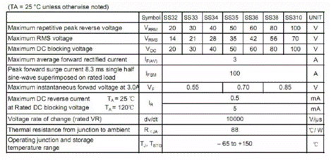 注意:功率肖特基二極管的散熱和安裝形式,要搞清楚產品為自然冷卻還是風扇冷卻,管子要安裝在易通風散熱的地方,以提高產品的可靠性。TO-220、TO-3P型的管子與散熱器之間要加導熱硅脂,使管子與散熱器之間接觸良好。DO-41、DO-201AD封裝的管子可采取立式、臥式、架空等方式安裝,這要根據實際情況確定。