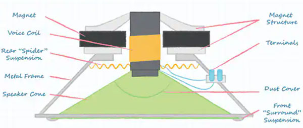 圖 1:標準揚聲器結構(圖片來源:CUI Devices)