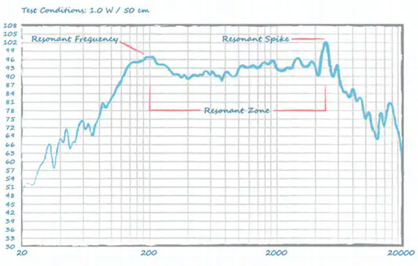 機械共振的影響因素包括重量,以及將不同質量連接在一起的剛度。對于標準揚聲器,這個質量就是振膜(或音盆),而剛度則取決于連接振膜和框架的懸架的柔性。由于揚聲器的制造方式多種多樣,每種揚聲器類型都可能產(chǎn)生不同的共振頻率。
