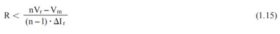 假設截止漏電流不隨電壓變化,同時忽略電阻的誤差,則對于n個具有給定截止電壓VR的二極管的串聯電路,我們可以得到一個簡化的計算電阻的公式: