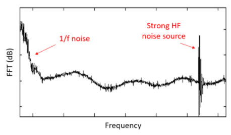 您可能希望從時域PDN紋波測量中看到FFT結(jié)果。強大的高頻噪聲源對背景噪聲非常明顯