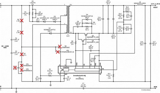 圖1:InnoSwitch3-AQ 1700V器件可實現簡單、加強絕緣的汽車電源