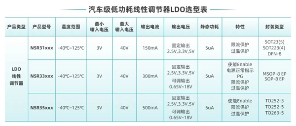 超低靜態功耗LDO!納芯微推出業界領先車規級NSR31/33/35系列芯片