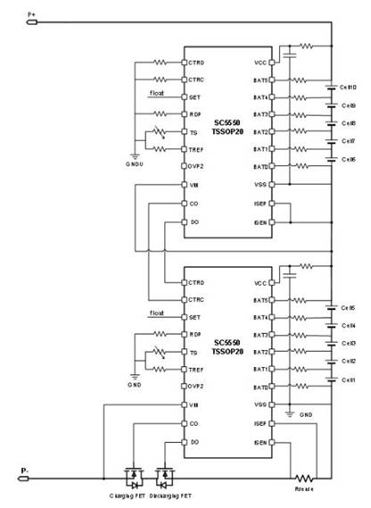 如有高壓高功率需求,需要用到6節以上串聯電池,SC5550支持可堆疊設計,單顆SC5550支持2~5串電池,通過2~3顆SC5550 堆疊,將可支持的串數拓展到6~15S。