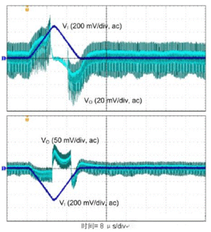 圖3:TPS63802在VI = VO = 3.3V, ΔVI = ±0.5V時的線路瞬態響應