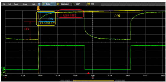 瞬態響應是指電源在負載電流突變時,電壓跌落和過沖的波形特征,評價指標有響應時間為電壓恢復到輸出值的持續時間,和過沖幅度百分比或絕對電壓值。