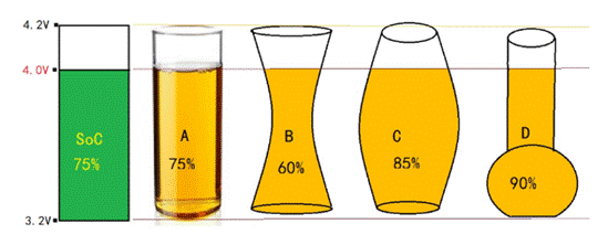 如上圖所示,假設A、B、C、D四個電芯標稱容量相同,而且當前開路電壓也都相同,但想一想,當前電量也相同嗎?電量分布對電池特性有何影響,有多大的影響?針對以上這4種特性的電池,哪一種不適合快充、哪一種不適合快放呢?結合上述提到的知識,應該不難得出結論吧!