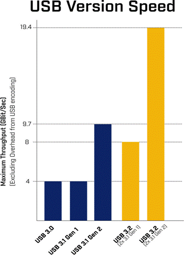 使用術語“USB 3.2”來表示第一代和第二代很可能會造成混淆。  “經 USB 3.2 認證”設備可理解為支持在超過 1 米的電纜上實現 20 Gbit/s 傳輸速度,或支持在超過 5 米的電纜上實現 8 Gbit/s 傳輸速度。我們將繼續監控并報告此標準及其命名的進展。