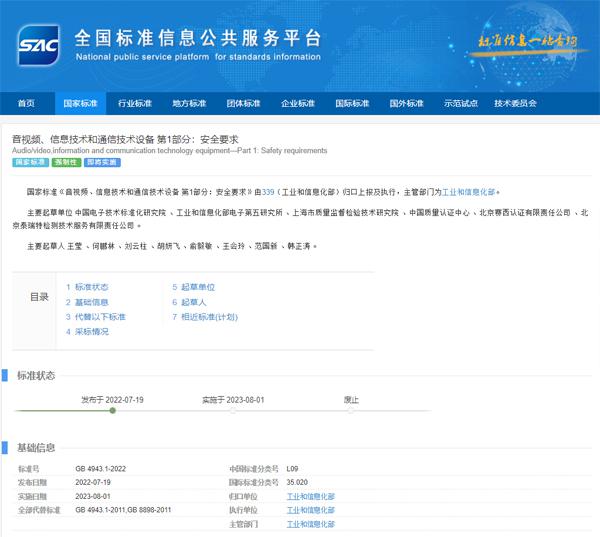 值得一提的是,新標準已于 2022 年 7 月 19 日發布,并將于 2023 年 8 月 1 日正式實施。