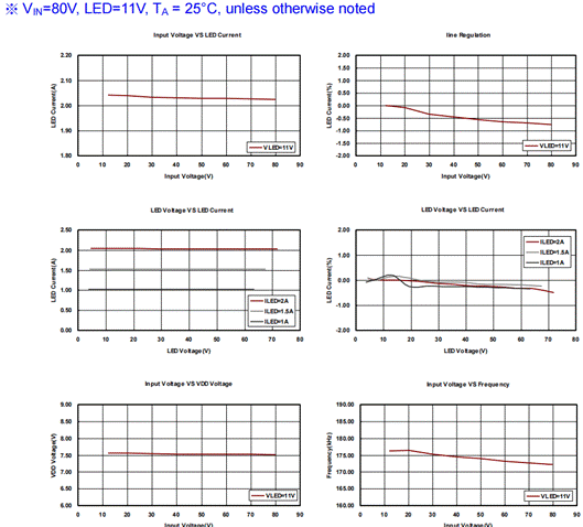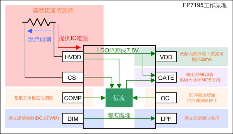 FP7195最大占空比可達(dá)100%,所以在操作時(shí)候輸入電壓可以幾乎等于LED電壓(電路元件會(huì)有壓降・所以不會(huì)輸人電壓等于ED電壓)・當(dāng)輸入電壓低于LED電壓后FP7195會(huì)讓MOS全開・當(dāng)輸入電壓掉低于LED電壓后輸出しED電流會(huì)跟著往下降。一旦輸入電壓高于LED電壓后可馬上回復(fù)正常恒流輸出。