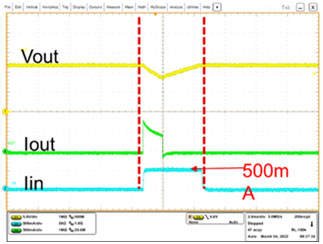 圖3. 輸入平均電流限流功能(測試條件:Vin=5V; Vout=12V; Ilimit=0.5A)