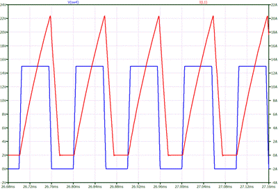 圖七:Boost A-B模式下,電感上的脈動電壓和電流曲線圖