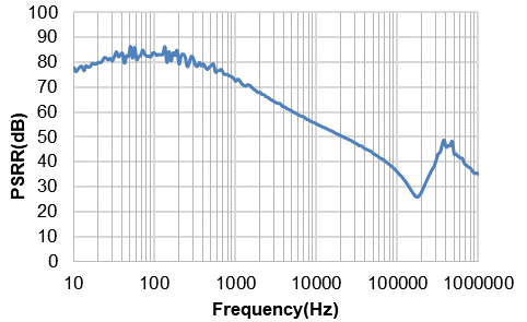 • 高電源紋波抑制比PSRR特性,70dB@VIN =3.3V,VO=2.8V, Io=10mA。以保證提供低紋波的電源供電。