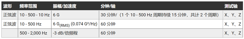 PUI Audio 為其觸感器件規定了三種振動測試(參見表 1)。器件完成測試并“休息”四個小時后,必須滿足額定轉速(對于 ERM 器件)或加速度(對于 LRA 型號)規格,以及電阻、額定電流和噪聲規格。